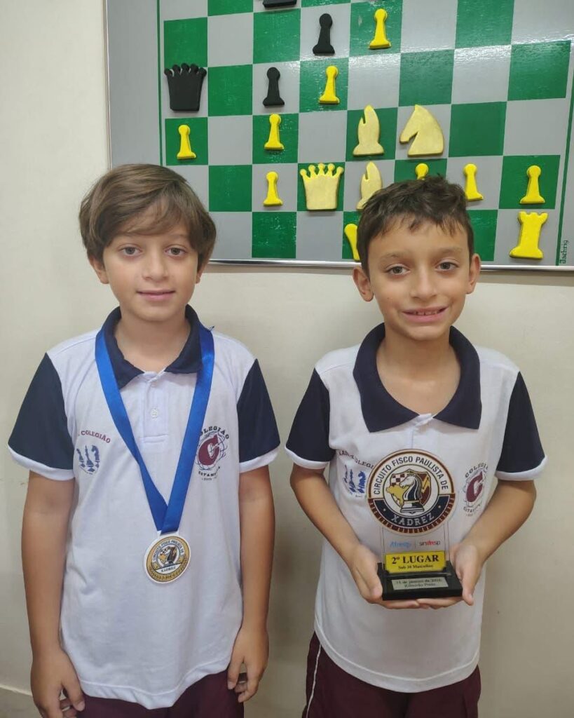 Os irmãos gêmeos Davi Diletti e Lucas Diletti foram destaque na 1ª Copa Fisco de Xadrez, realizada em Ribeirão Preto no início do mês. Davi obteve a segunda colocação e lucas a quarta na categoria Sub 10. O primeiro colocado também foi do Colegião, Victor Destro, que já saiu na foto em post anterior. Parabéns alunos!!!