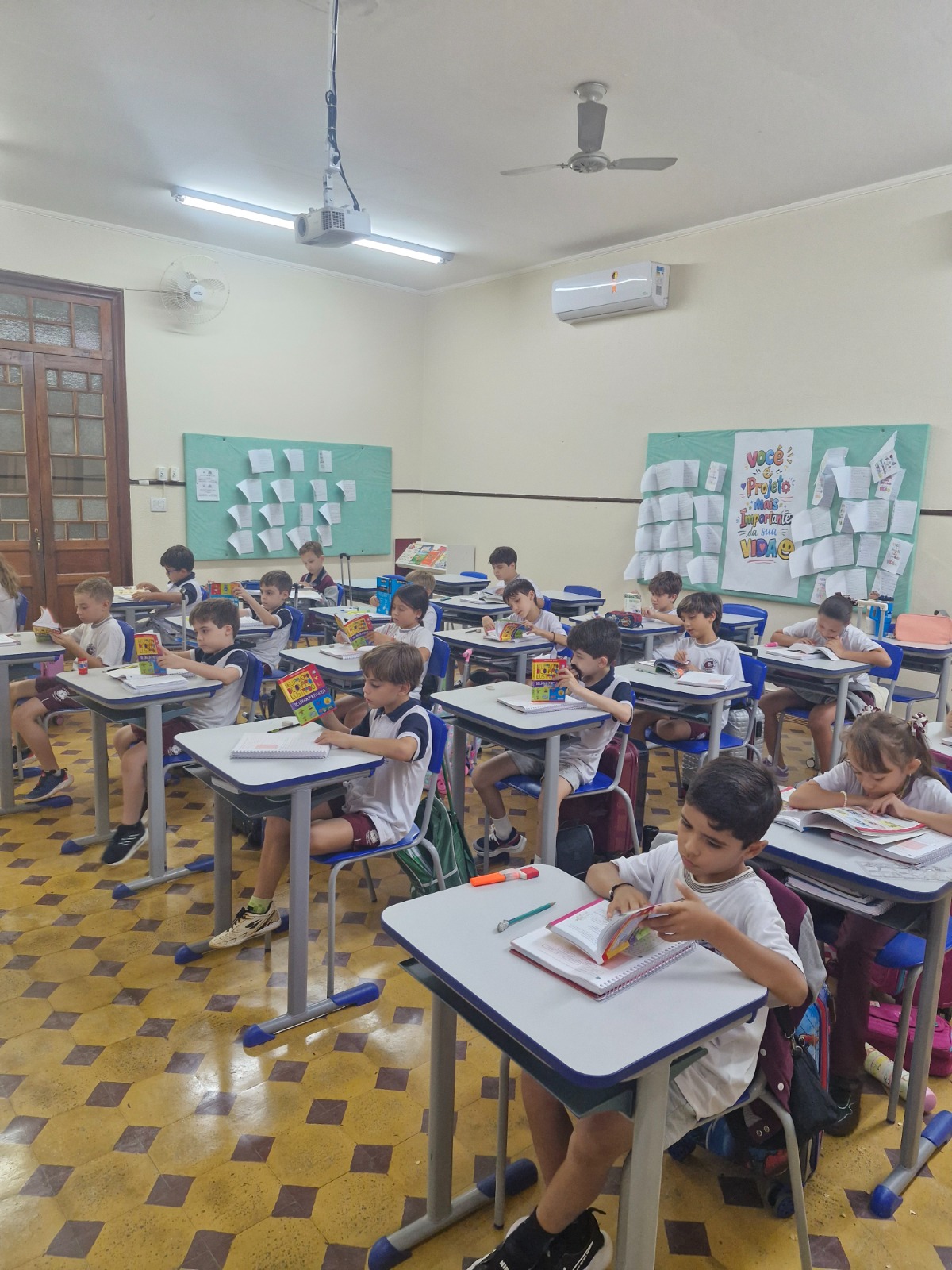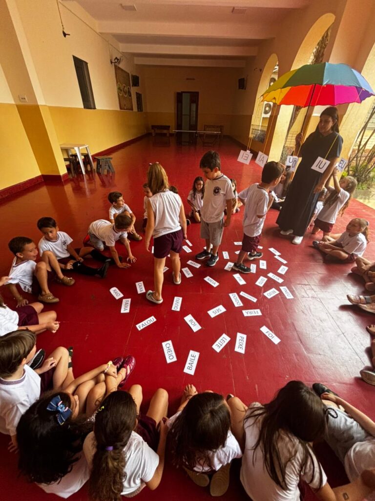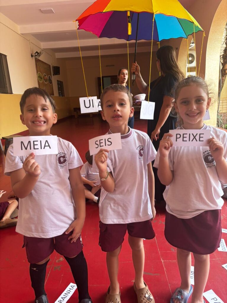 Nesta proposta, o 1º Ano B explorou os encontros vocálicos a partir de uma vivência lúdica com o guarda-chuva, recurso simbólico que despertou curiosidade, atenção e participação ativa da turma.