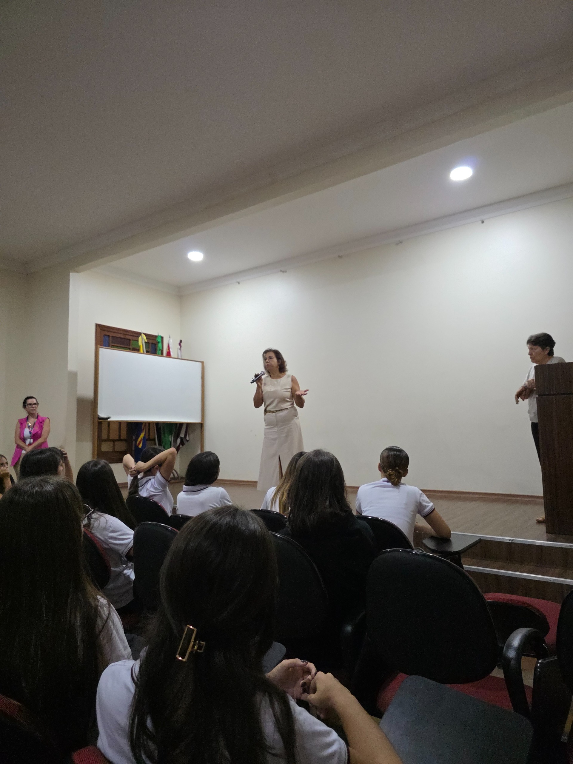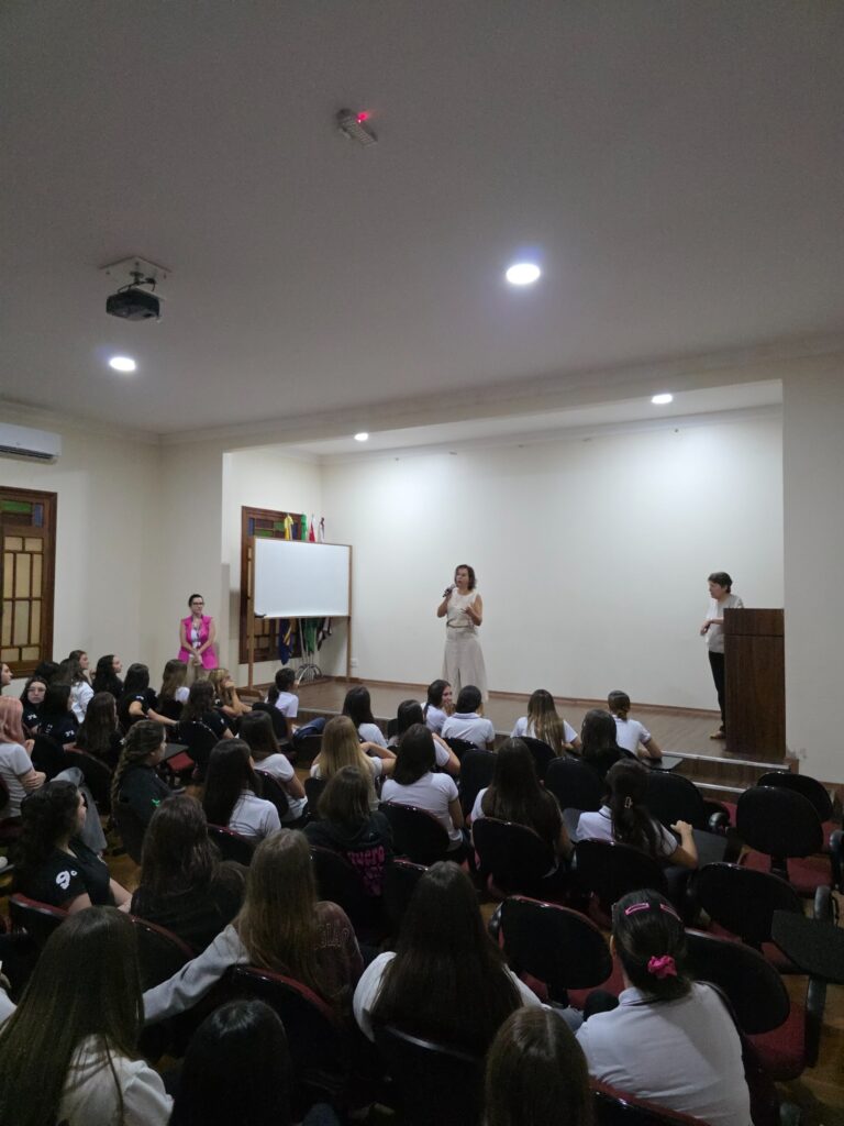 Na semana do dia das mulheres, as alunas do Ensino Médio participaram de um encontro com a médica ginecologista Dra. Roseli de Fátima Morandin Lopes, acerca de assuntos relacionados ao corpo feminino, à condição das mulheres no mundo contemporâneo e ao respeito mútuo.